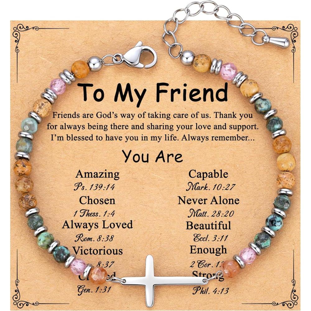 TONY & SANDY Christian Cross Bracelet for Women, Valentine’s Day Gifts for Her, Confirmation Baptism Easter Gifts, Unique Gift for Friends Daughter Mom Sister in Christ Birthday Christmas(Friend)