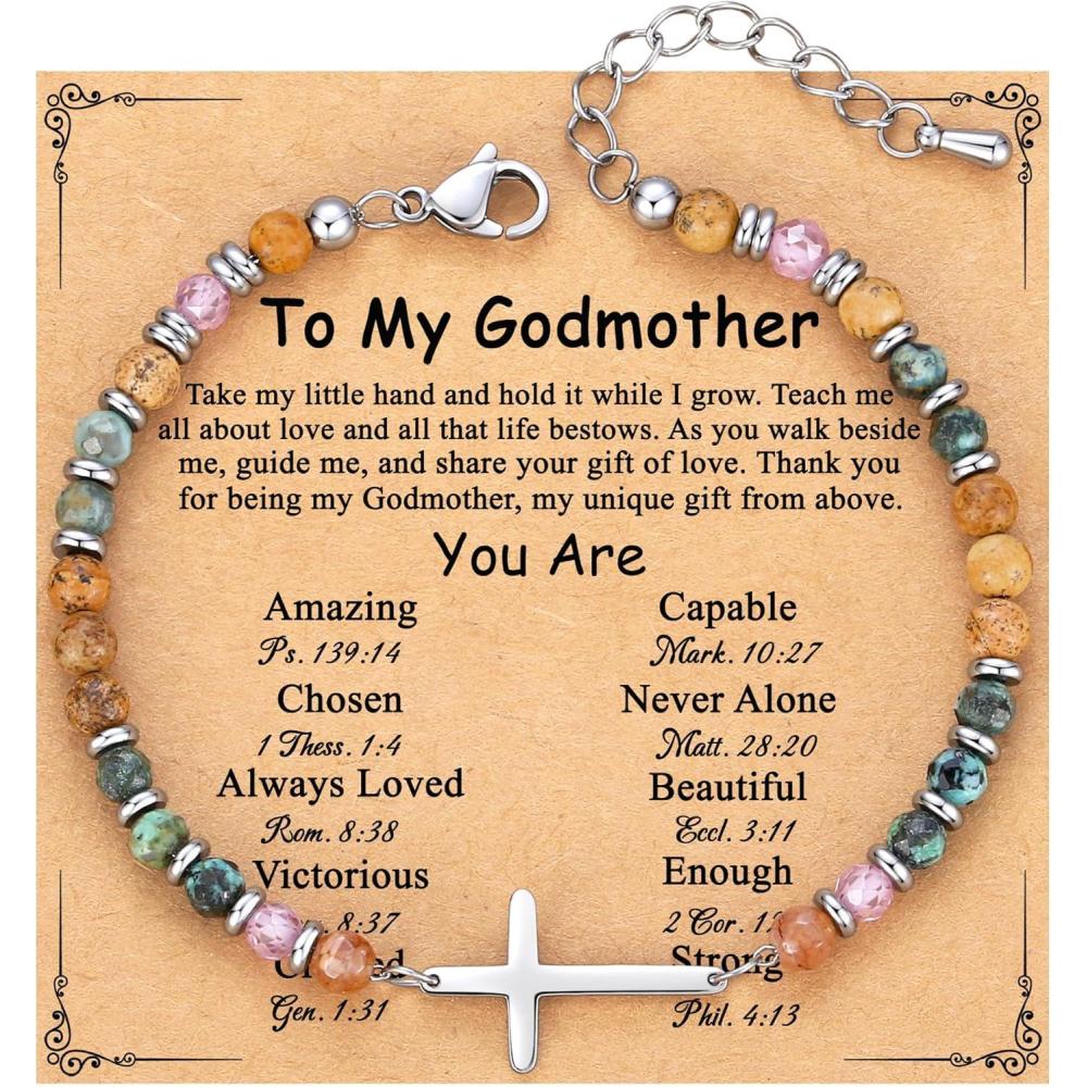 TONY & SANDY Christian Cross Bracelet for Women, Valentine’s Day Gifts for Her, Confirmation Baptism Easter Gifts, Unique Gift for Friends Daughter Mom Sister in Christ Birthday Christmas(Godmother)