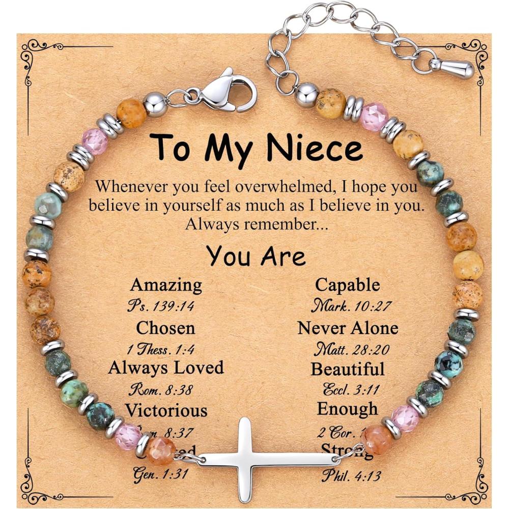 TONY & SANDY Christian Cross Bracelet for Women, Valentine's Day Gifts for Her, Confirmation Baptism Easter Gifts, Unique Gift for Friends Daughter Mom Sister in Christ Birthday Christmas(Niece)