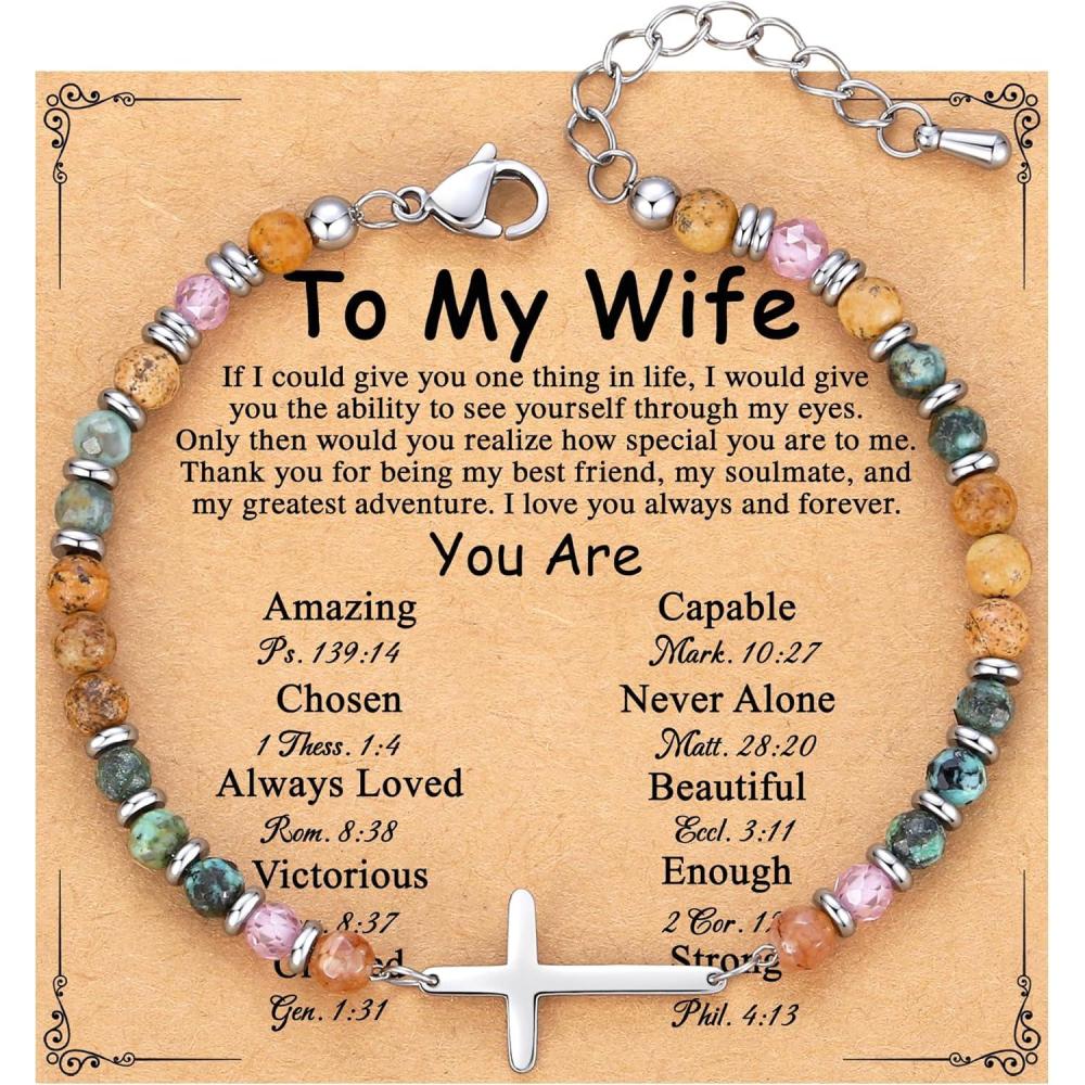 TONY & SANDY Christian Cross Bracelet for Women, Valentine’s Day Gifts for Her, Confirmation Baptism Easter Gifts, Unique Gift for Friends Daughter Mom Sister in Christ Birthday Christmas(Wife)